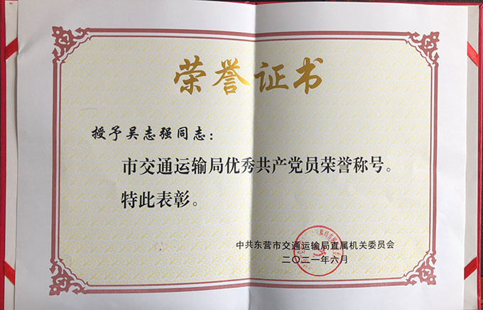 吳志強(qiáng)榮獲”市交通運(yùn)輸局優(yōu)秀共產(chǎn)黨員“榮...